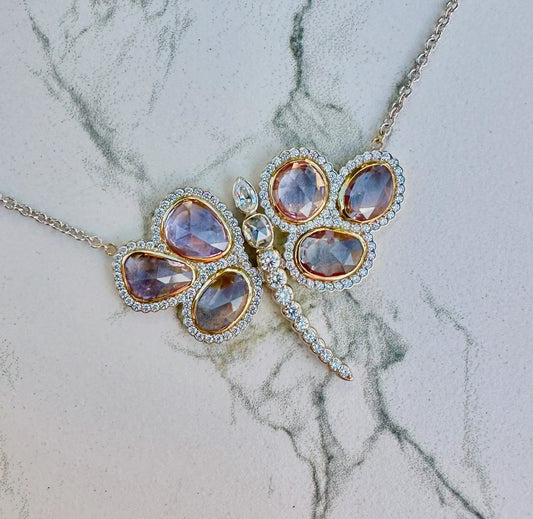 Bespoke Butterfly 0.91ctw Rose-Cut Diamond & 5.90ctw Pink Sapphire Pendant Necklace